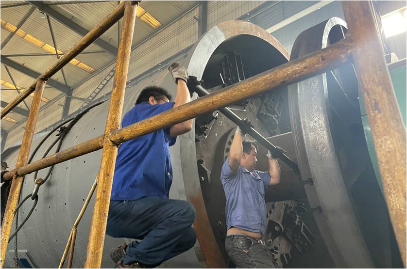 - 12月25日,我公司生產(chǎn)的兩臺φ5×15m陽極爐成功裝車,即將發(fā)往客戶現(xiàn)場。 該產(chǎn)品直徑5米、長15米,單臺爐體及配套設(shè)備重量達(dá)到385噸。雖然直徑高達(dá)5米,從爐體一端到15米